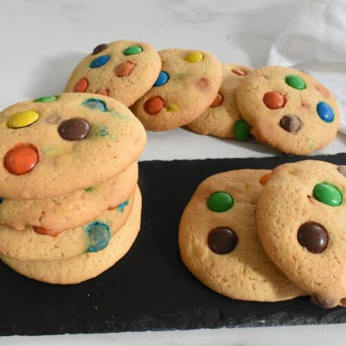 To begin, grab flour, butter, sugar, one egg, baking powder, vanilla, and of course a good handful of colorful M&M’s. These ingredients sit in almost every kitchen, so you don’t need to run to the store when the craving for cookies hits. You just mix the butter and sugar until they look creamy, add the egg and vanilla for richness, then fold in the flour and baking powder. The dough comes together quickly without any fuss. Finally, stir in the M&M’s for that fun burst of color and sweetness.