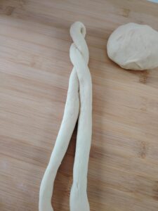 - Roll each piece into a long rope (about 40–45 cm).